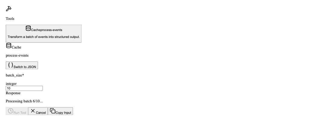 • Cancelling a running tool call aborts the underlying request (no orphan fetches against the MCP gateway).